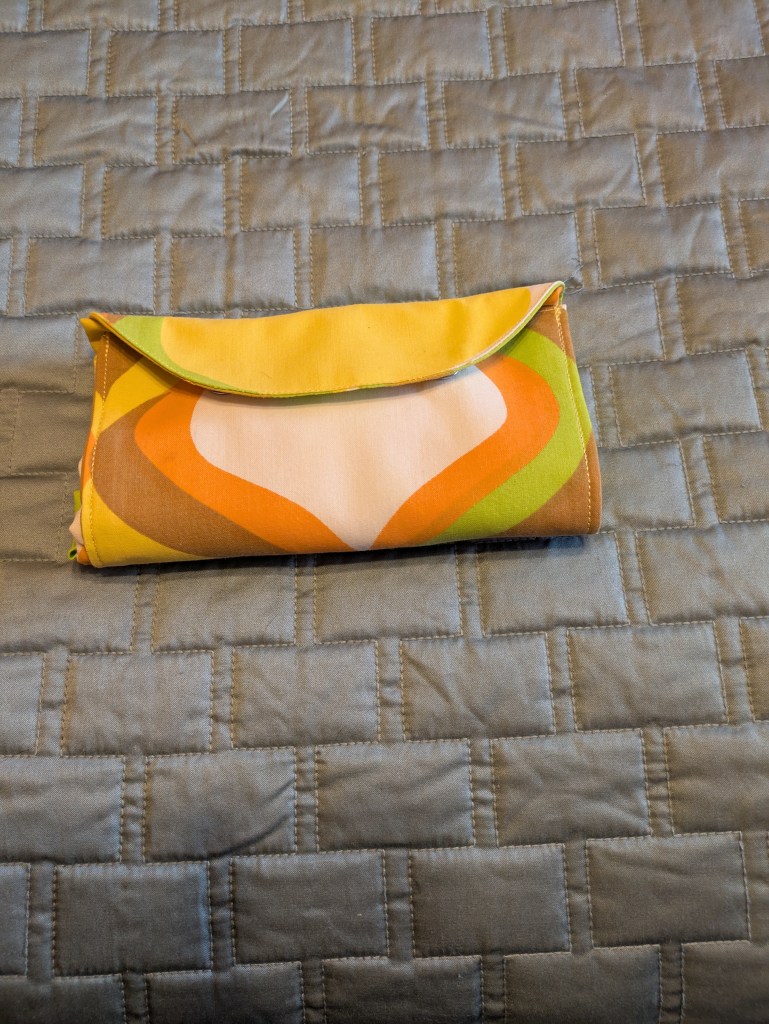 I make these lightweight shoppers from upcycled/thrifted fabric. They fold neatly into a small clutch that will fit into your handbag or glovebox so you always have a shopping bag with you!